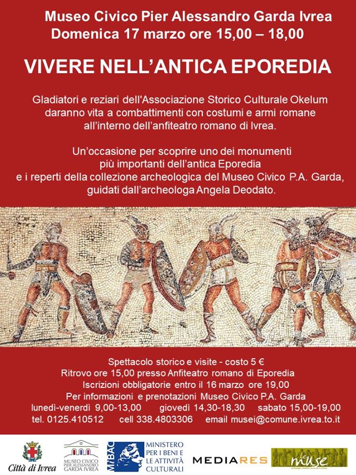 Domenica 17 marzo vieni a scoprire l’anfiteatro romano e la vita nell’antica Eporedia attraverso lo spettacolo storico del gruppo Okelum accompagnati dall’archeologa Angela Deodato.